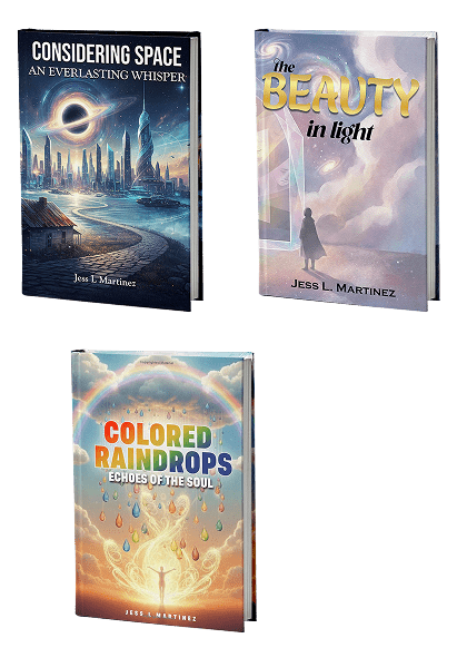Step into a world of poetry books and reflective storytelling that explore life, consciousness, and the quiet truths of human existence. Jess L. Martinez blends modern poetry with philosophical insight to create writing that resonates deeply with curious minds and thoughtful readers.